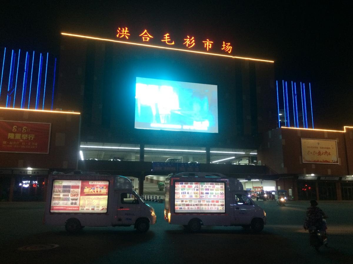 ★车身内置喷绘布,晚上有灯光;