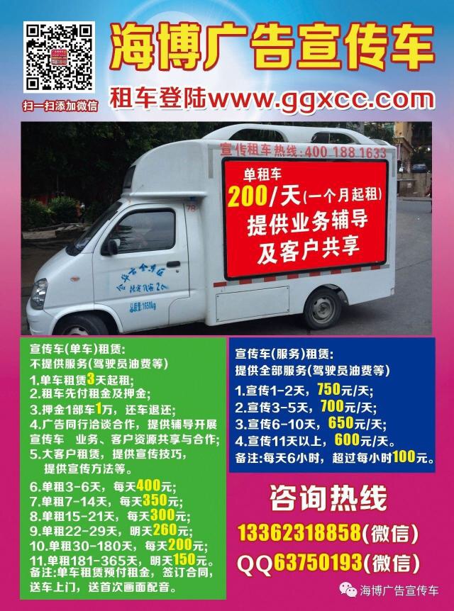 ▲宣传4天起送画面设计制作及配音制作,不满4天收取画面1部车/120元,配音100元/首。
