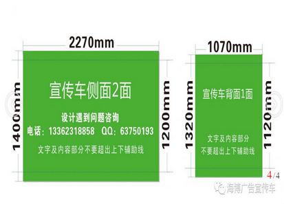 ※业务流程:电话预定(提供宣传日期+车数+班次)→客户转账定金(象征性)→客户添加QQ或微信提供素材→公司设计车身图片→客户图片确认→客户提供喇叭语音文字→公司录制语音→公司宣传第一天(签约)收50%预付款→宣传结束收余款(未了付费凭据保存,租车费限网银或支付宝及微信转账)。