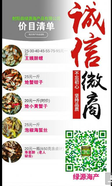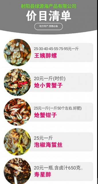 绿源海产品,种类多,品质好,口感佳,健康绿色海产品,欢迎您品尝。