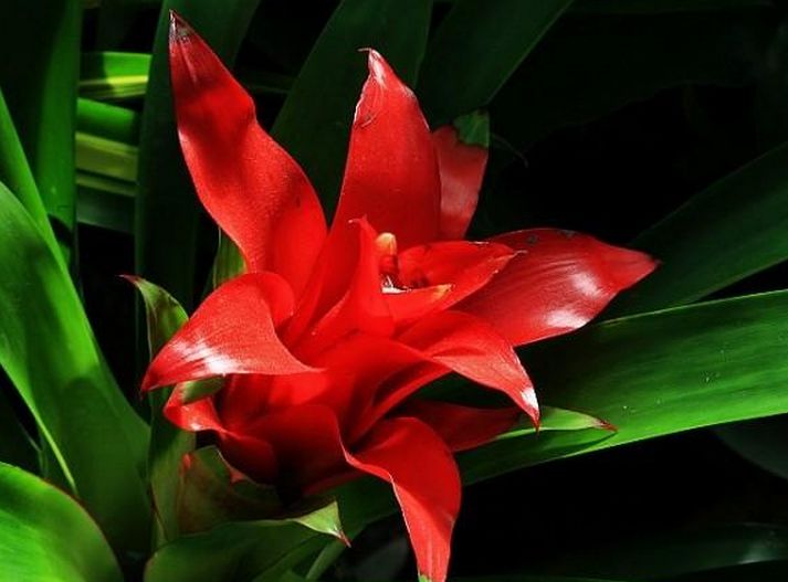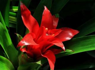叶莲座状基生,硬革质,带状外曲,叶色有的具深绿色的横纹,有的叶褐色具绿色的水花纹样,也有的绿叶具深绿色斑点等。特别临近花期,中心部分叶片变成光亮的深红色、粉色,或全叶深红,或仅前端红色。叶缘具细锐齿,叶端有刺。花多为天蓝色或淡紫红色