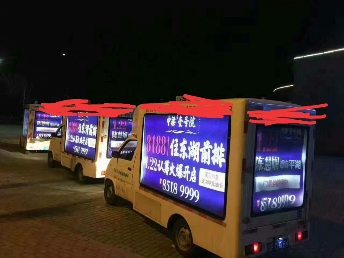 2、移动广告牌有:每周一天、每月一天、每年365天、每月30天、每周7天、单天均可投放。