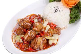香辣鸡肉盖浇饭